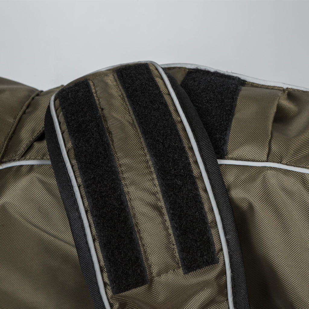 Dieser Winter-Hundemantel verfügt über eine leichte Wattierung, die den Hund bei kühler Witterung im Freien angenehm warm hält. Die Oberfläche (420 Denier) ist wasser- und windabweisend und mit getapten Nähten und einem leichten Fleecefutter ausgestattet. Ein Fleecekragen umschließt den Halsbereich für zusätzlichen Komfort.
